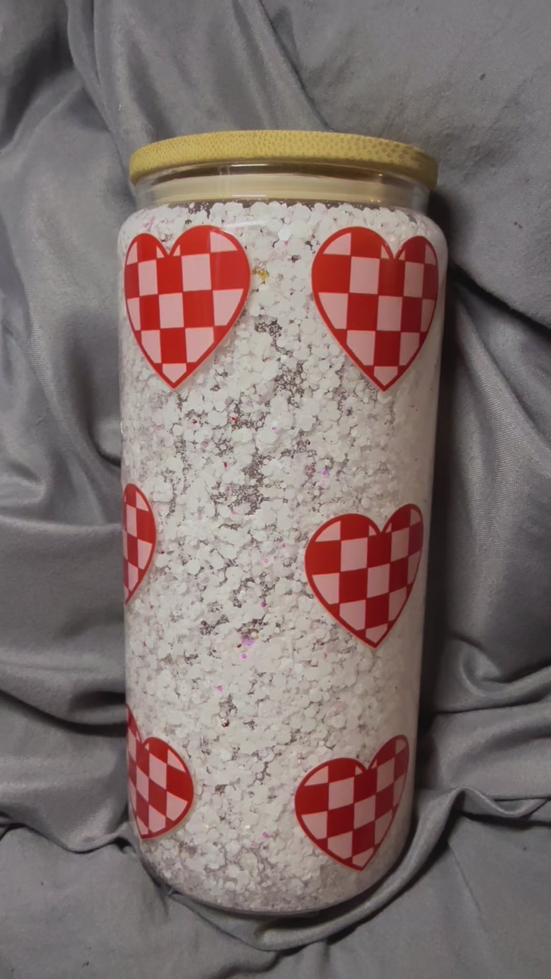White glitter with heart decal.